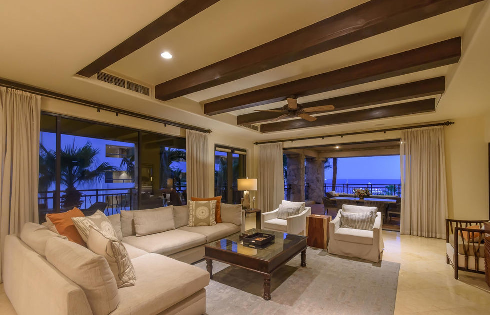 Welcome to paradise at Hacienda Beach Club & Residences! This stunning three-bedroom residence offers an exceptional living experience in one of Cabo San Lucas's most coveted communities. Floor-to-ceiling windows flood the space with natural light and offer panoramic views of the Sea of Cortez and Land's End. The gourmet kitchen, complete with a granite island, is perfect for gatherings. Enjoy movies or sports on the 85-inch flat-screen TV in the living room or on the expansive terraces.
